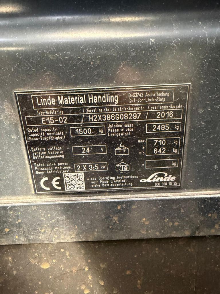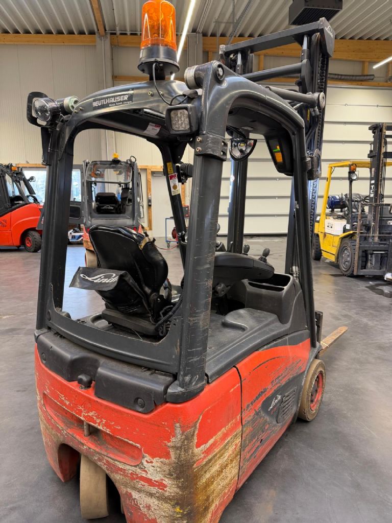 Hersteller: Linde Typ: E15-02 Bauart: Elektro 3 Rad-Stapler Antriebsart: Elektro Tragkraft: 1500 kg Baujahr: 2016 Betriebsstunden: 9900 |